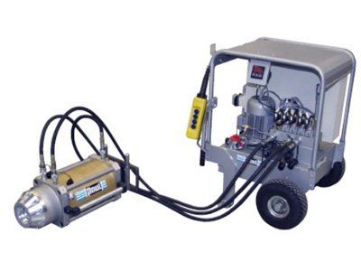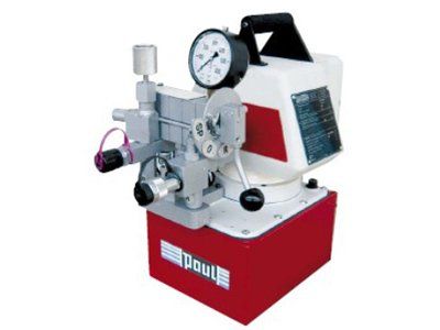 Están equipados con un motor para corriente alterna de una fase, una bomba hidráulica de dos fases, una válvula de mando manual, válvulas de limitación de presión ajustables para las funciones de tensar, retroceso y anclar, así como una válvula de descarga fina para descargar la función de tensar.